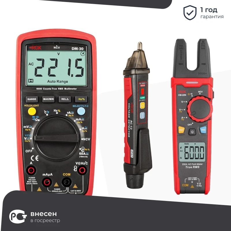 RGK DM-30 цифровой мультиметр с токовыми клещами CM-22N и индикатором напряжения AC-12, 776448/755146/776394 в Екатеринбурге