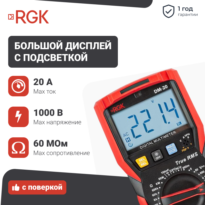 RGK DM-20 цифровой мультиметр с поверкой 779647 в Екатеринбурге
