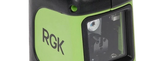В лазерном уровне RGK есть маятниковый компенсатор. Он автоматически выравнивает проецируемые лучи, если прибор отклонен от горизонта на ± 3°. При большем наклоне лазерные линии начинают мигать, сигнализируя о проблеме. Боковой переключатель блокирует компенсатор. Это позволяет безопасно перевозить прибор в условиях повышенной тряски и строить наклонные проекции.