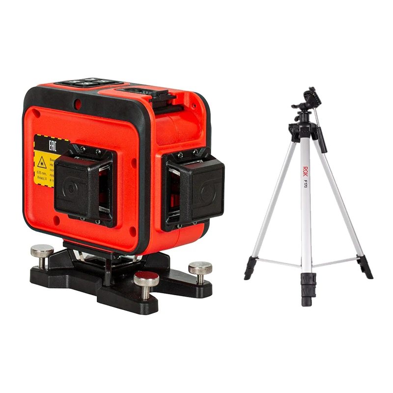 Лазерный уровень RGK PR-38R со штативом F170 – профессиональная модель для проецирования горизонтальной и двух вертикальных лучей с разверткой 360 °. Без приемника рабочий диапазон составляет 20 м, что достаточно для выполнения разметки в помещении.