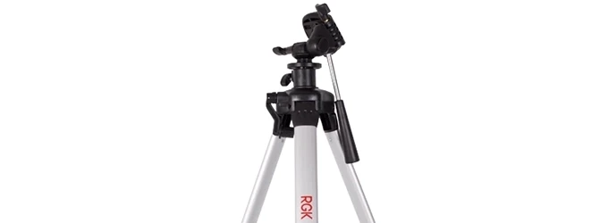 Телескопические ножки с клипсовыми зажимами, вращающаяся площадка, наклонная головка и пузырьковый уровень — все это делает штатив удобным и точным в использовании. Высота регулируется от 74 до 170 см. Прочный алюминиевый корпус устойчив к повреждениям на стройке, но не утяжеляет конструкцию.