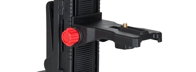 Кронштейн предназначен для крепления лазерных уровней с помощью прищепки или саморезов к стене. Диаметр внешней резьбы составляет 1/4", внутренней — 5/8". Кронштейн может использоваться в качестве переходника для установки на штативы. Высоту площадки можно плавно регулировать винтами.