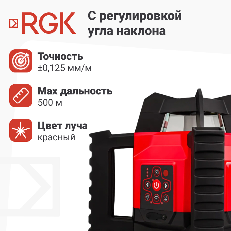 Ротационный лазерный нивелир RGK SP-312 проецирует луч красного цвета на расстояние до 500 м с разверткой 360°, а также точку зенита. Модель поддерживает работу по секторам и построение наклонных линий, что делает его универсальным и удобным инструментом для профессиональных строителей, ландшафтных дизайнеров и мастеров по ремонту. В комплект входит приемник с кронштейном для нивелирной рейки.
