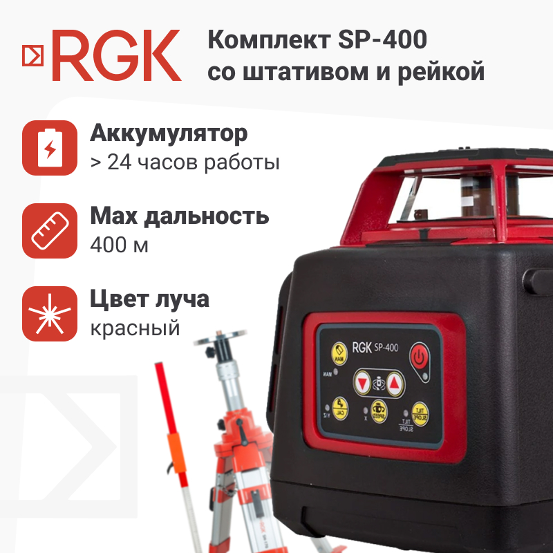 Ротационный нивелир RGK SP-400 со штативом SH-170 и рейкой LR-2