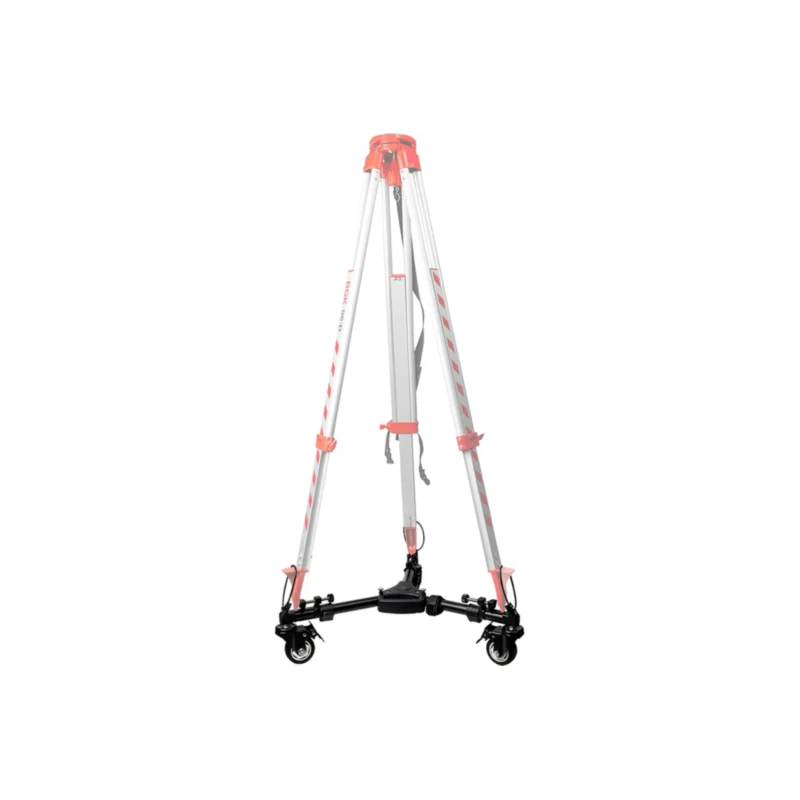 Конструкция выполнена из прочной стали, что обеспечивает устойчивость даже с тяжелым оборудованием. Три поворотных колеса из износостойкого полимера гарантируют маневренность и не оставляют следов на напольном покрытии. Система крепления универсальна и подходит для большинства моделей штативов. Специальные фиксаторы предотвращают самопроизвольное складывание и перемещение тележки во время работы. В сложенном состоянии аксессуар занимает минимум места (47×17×17 см), что удобно для транспортировки и хранения.