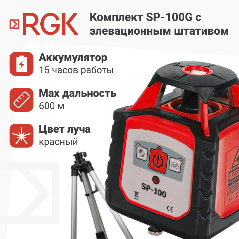 Ротационный нивелир с элевационным штативом RGK SP-100 COMBO